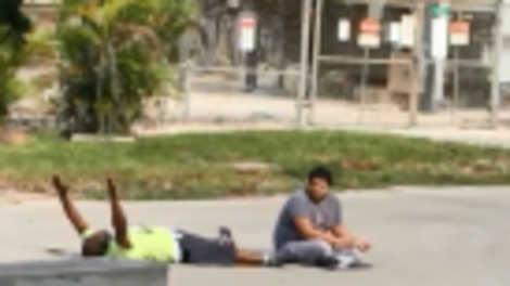 Footage from the 2016 incident shows Kinsey lying on his back on the street with his arms way above his head, while his client sits next to him on the ground.